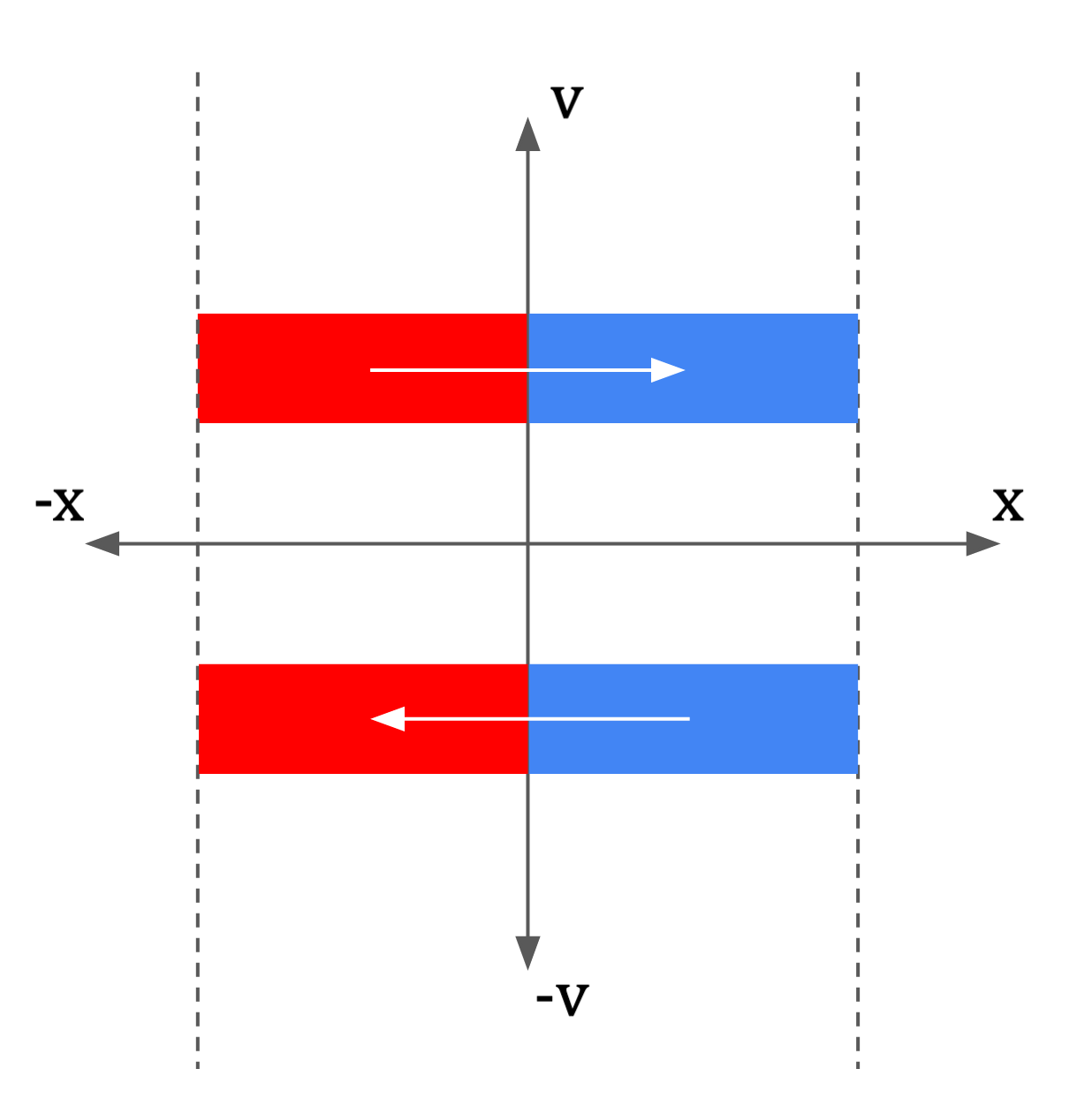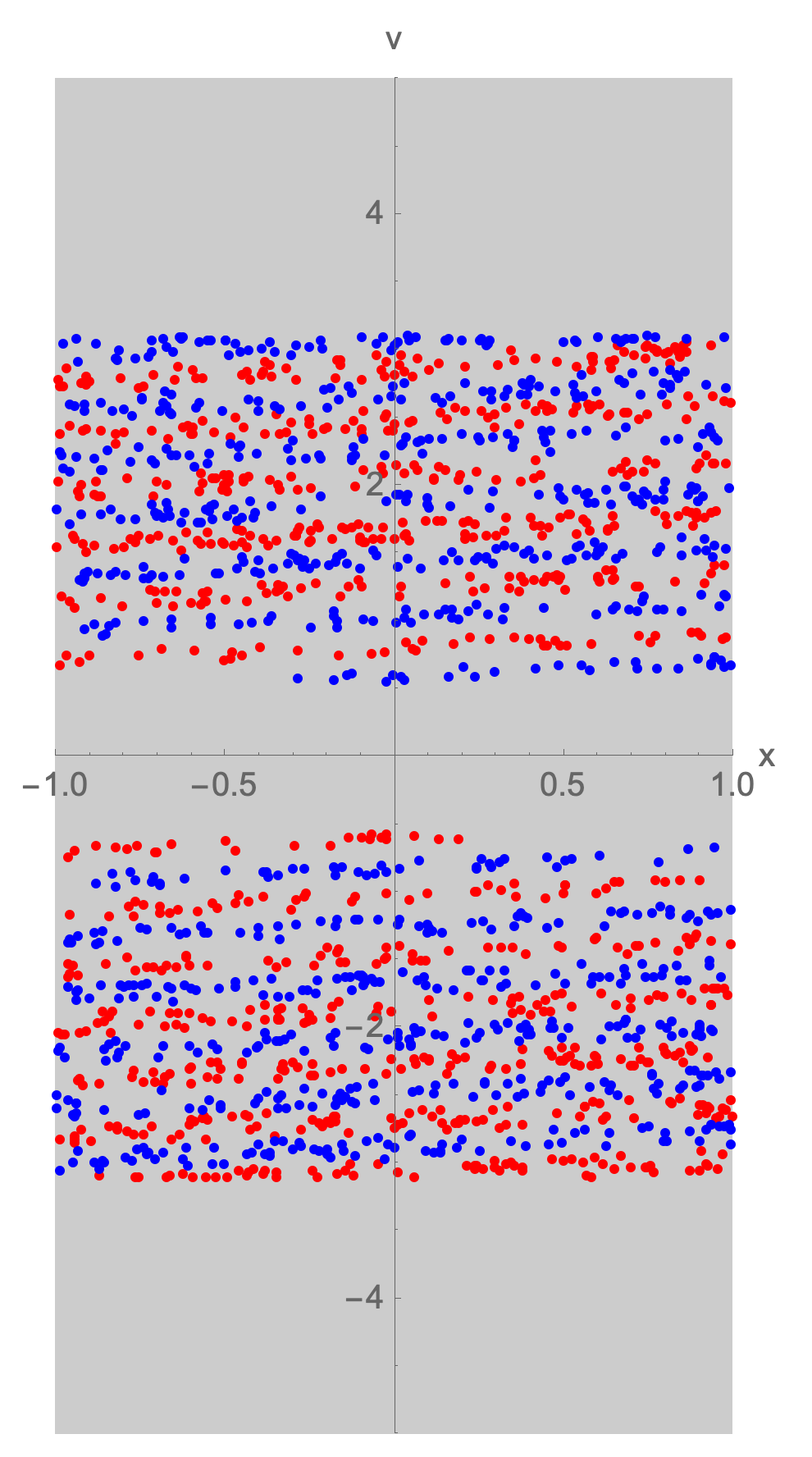 Here is shown all initial states (position and velocity) the particle could occupy. States are colored red or blue for the left and right sides of the box respectively.